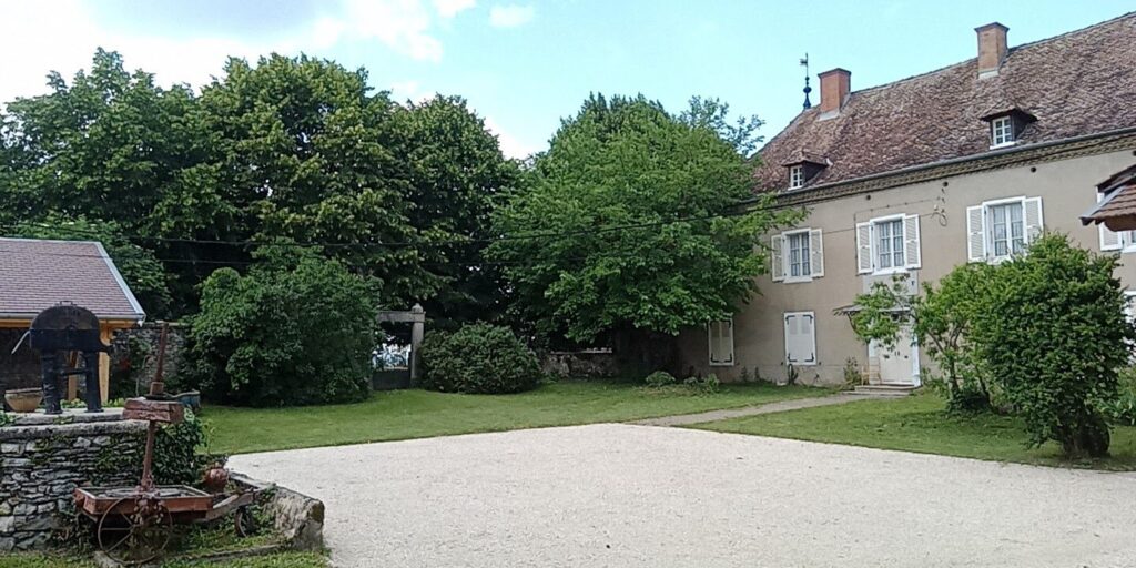 Au sommet d’une colline du Nord Dauphiné, le domaine du Mont surplombe et domine le village de Sermérieu ; commune du Pays des Couleurs.